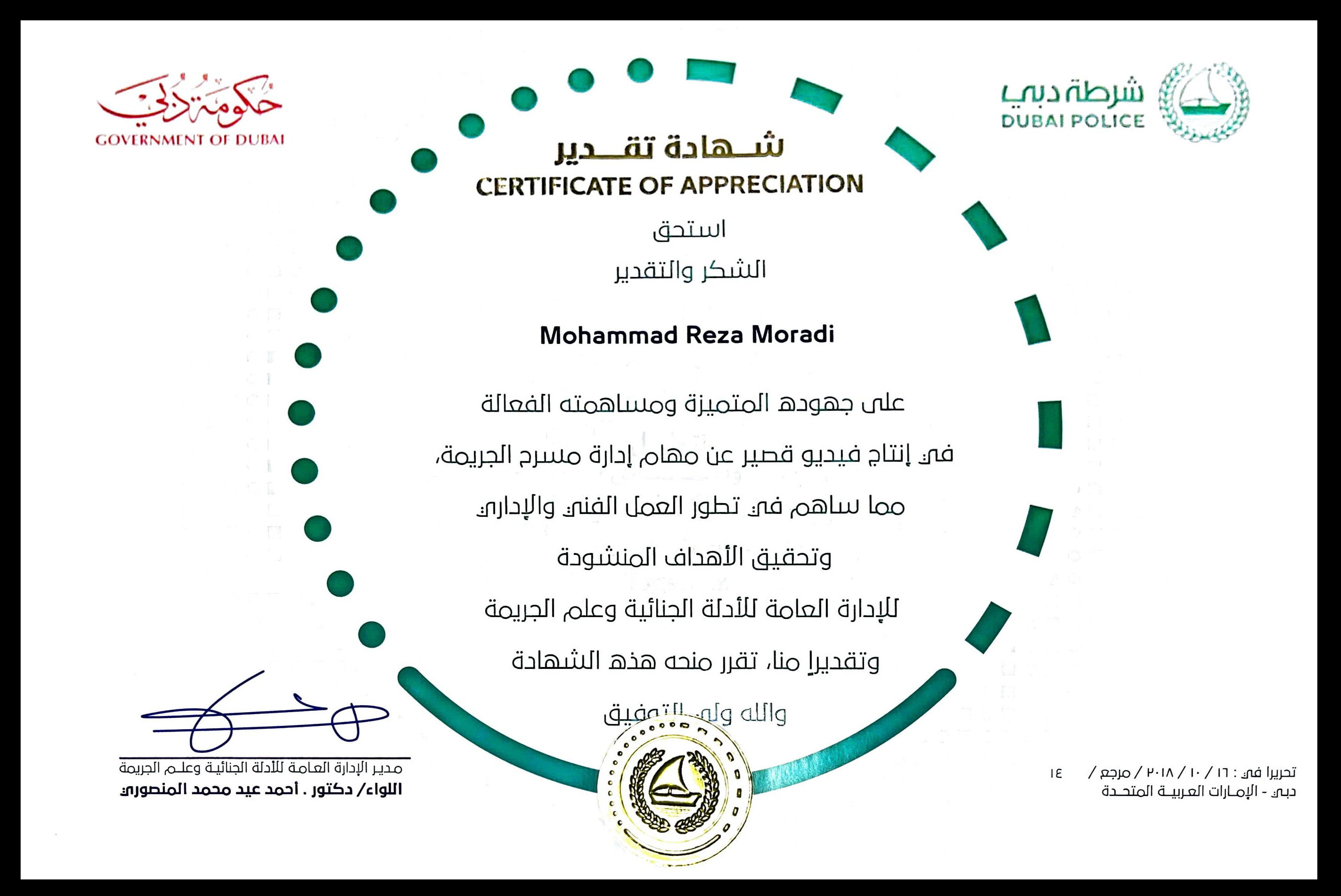 I had the opportunity to coproduce & produce multiple films or act as videographer for Dubai police as well as private photography in crime sense department during year 2017 – 2019, promoting awareness among the young generation.